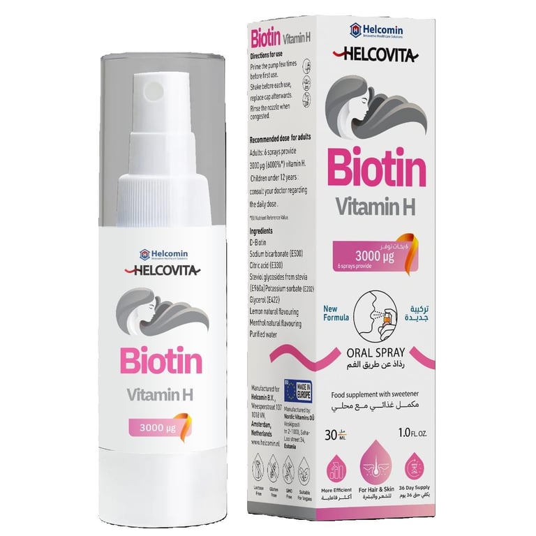 Vitamin H or B7, or biotin, is an irreplaceable helper with many useful factors, but mostly known for giving you strong and healthy hair, well-groomed skin and a well-functioning nervous system. When you notice the first signs of aging on your body, such as brittle hair and nails and dull skin, biotin will bring back your natural glow. For example, this substance helps to significantly improve hair thickness and reduce wrinkles on the face. Using an orally administered spray vitamin is easy and thus biotin is absorbed into your body many times faster and more effectively.