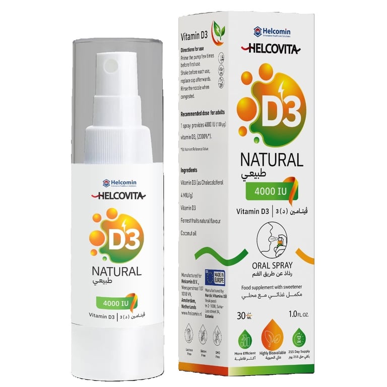 Discover the power of HelcoVita™ Vitamin D3 for Adults! This natural Oral Spray boasts a potent concentration of 4000 IU Vitamin D3, meticulously designed to fortify bone health and bolster your immune system. Experience the convenience of an oral spray that ensures quick and efficient absorption, making it easy to take your daily dose anytime, anywhere. perfect for your on-the-go lifestyle. Whether you need an immune boost or support for strong bones, HelcoVita™ Vitamin D3 is your ideal companion.